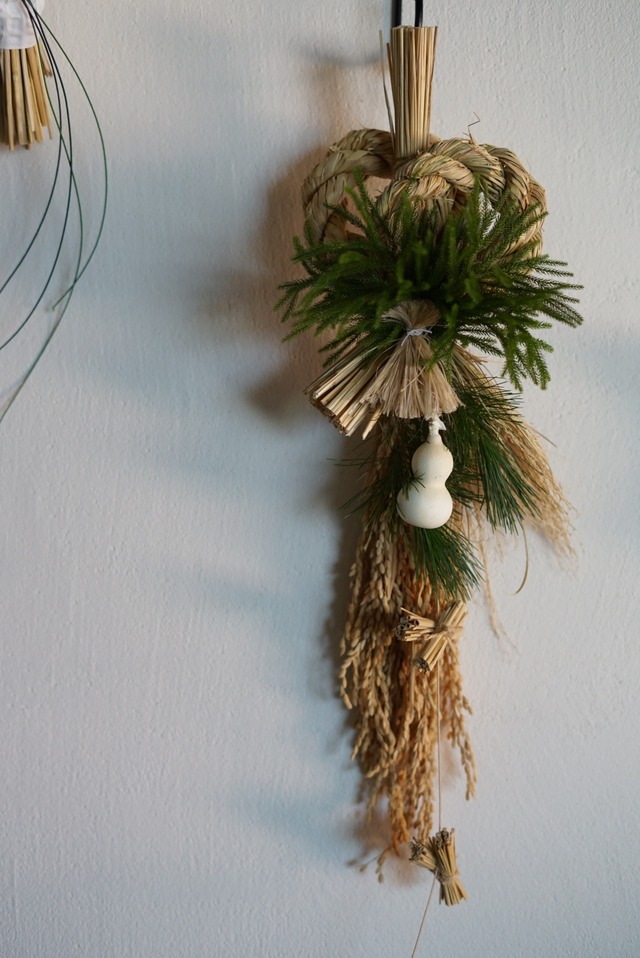 12月25日以降より順次発送予定でおります。 丁寧に作られたしめ縄に稲穂、松、日陰葛と白いひょうたんを合わせました 白いひょうたんは多くの実りや幸運、そして健康や災いから守る力を象徴していると云われます 稲穂にも来年は美味しいお米を沢山食べれるよう願いを込めました 意味合いも込めて良き2026年になりますように 大きさ/長さ約55cm 雨が当たらなければ屋外に飾って頂いても大丈夫です。