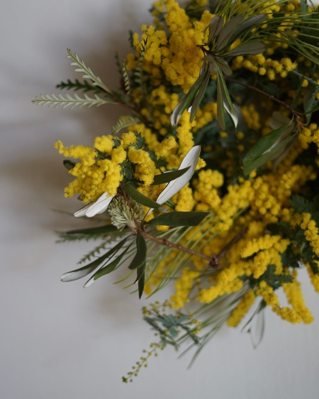 春の訪れを感じるミモザリース 美しいミモザをたっぷりと使ったリースです濃い黄色の色合いが春の訪れを感じます そのままドライになり、長く楽しむことができるのが特徴です 深みのある黄色がお部屋を華やかに、 季節のインテリアとして、 自宅やオフィスに飾っていただけます。 また、ギフトにも喜ばれるアイテムです 大寒を肌で感じるこの寒い時期、ミモザのリースで春の温もりを感じてみませんか? アクセントにバンクシアなど、その他リーフを合わせてます *ミモザは乾燥具合や気温などの環境により、ふわふわの状態からドライになるまでの時間を読むことが難しい花材です、 お届けの状況によってはドライになっての到着となる事もございます、ご了承下さい。 大きさ/直径約30cm 直射日光を避け屋内はもちろん、屋外にも飾ってお楽しみいただけます