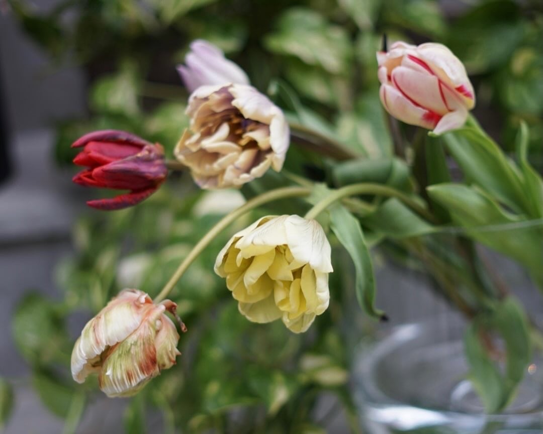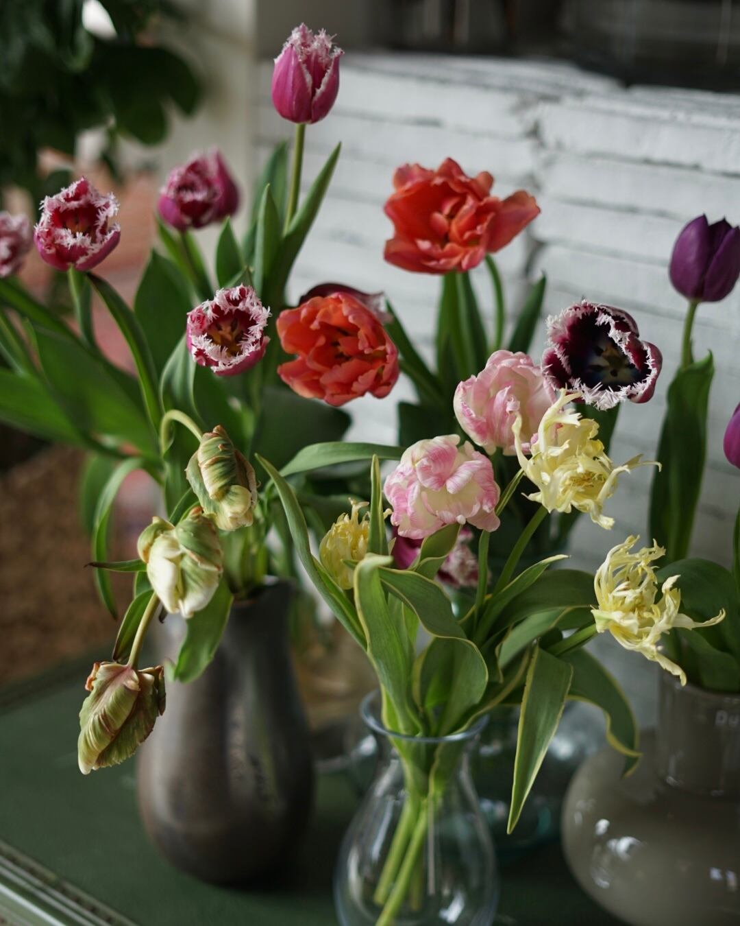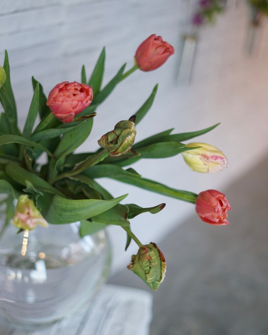 日々花の様子が変化する動きのあるチューリップなので飾るコツはありません