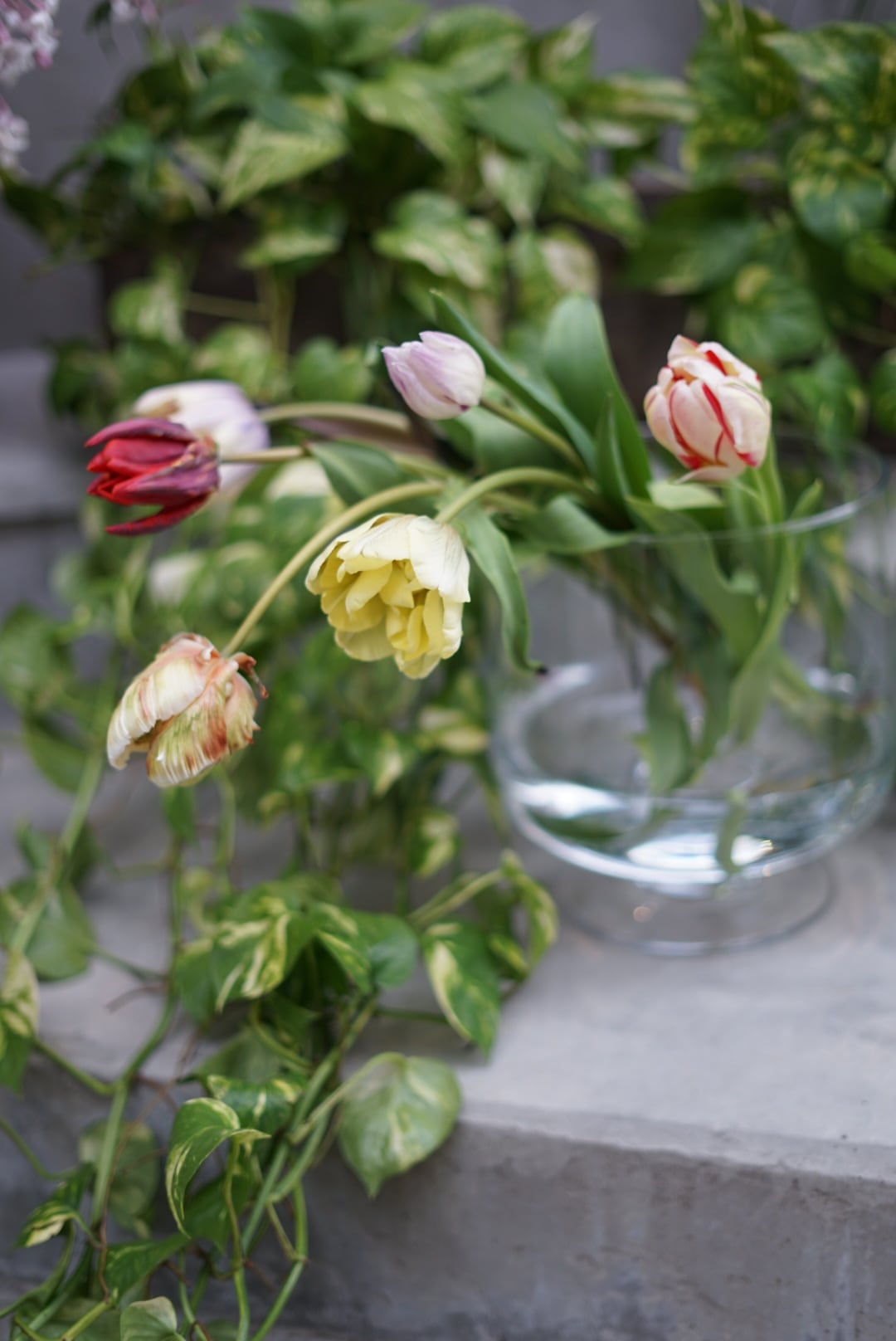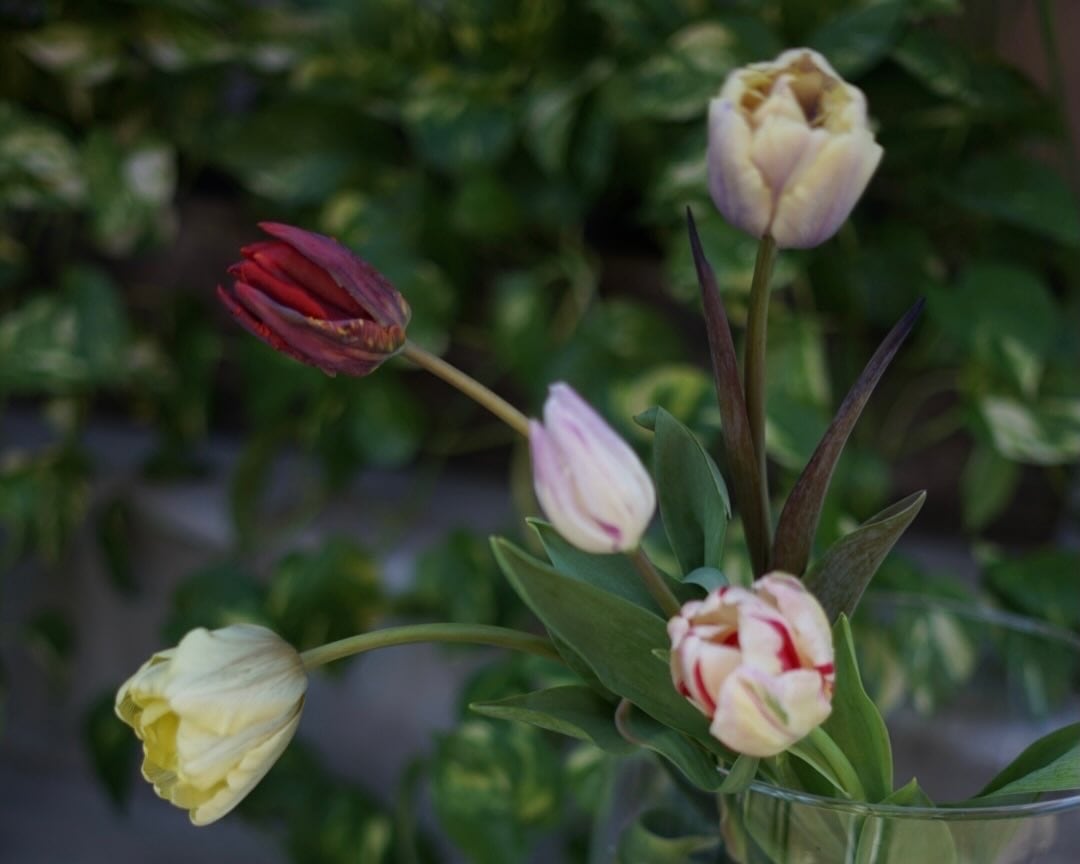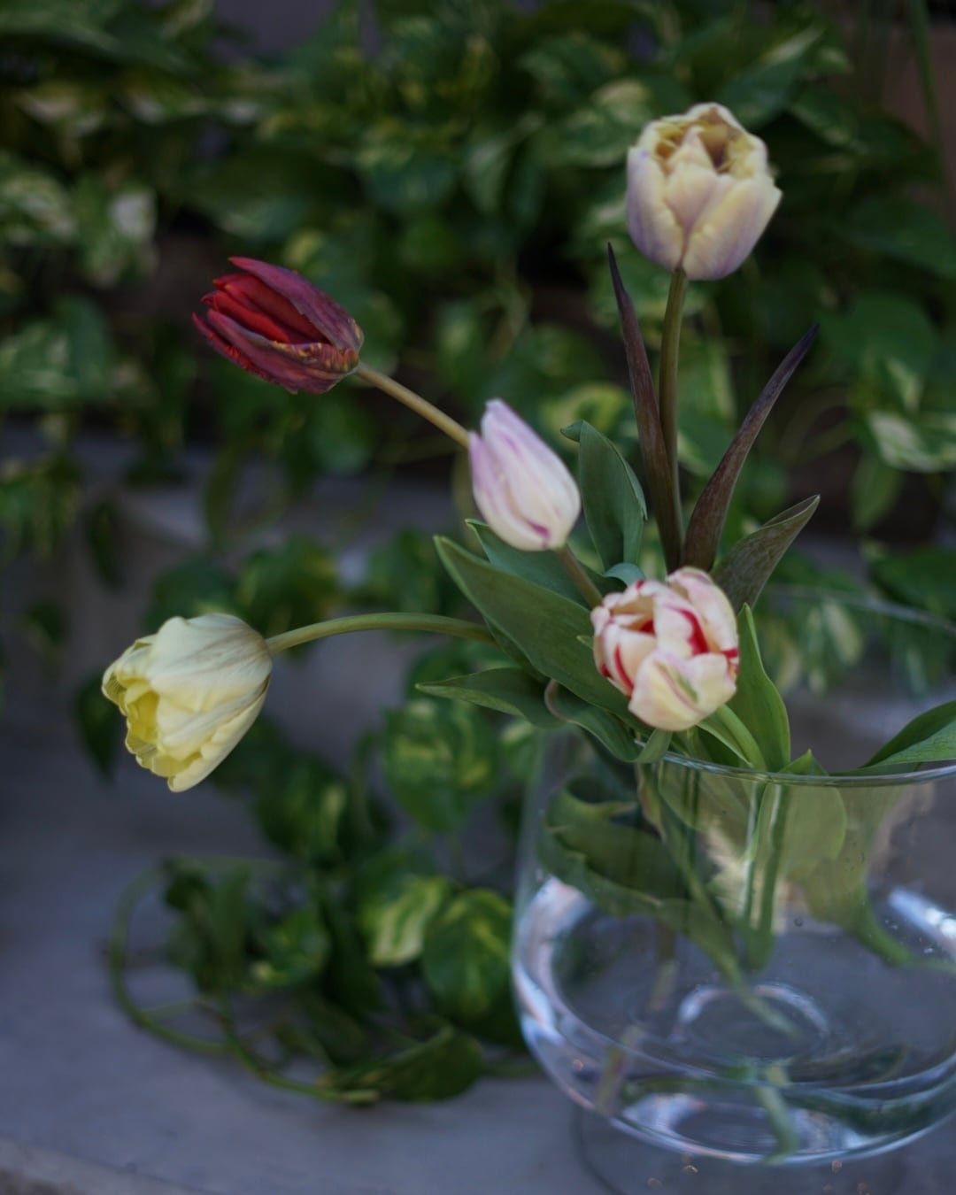 日々花の様子が変化する動きのあるチューリップなので飾るコツはありません